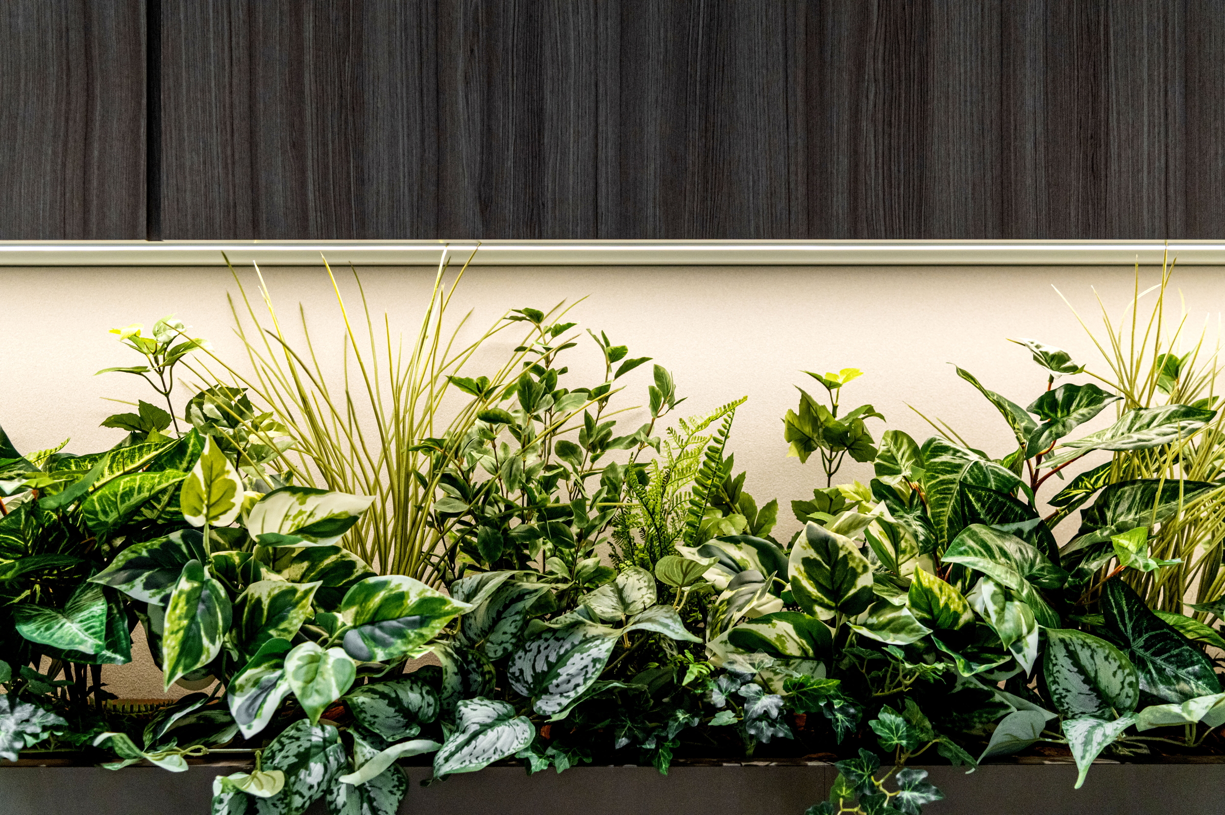 ミディアムブラウンをアクセントで取り入れて、高級感を感じさせる空間を演出。
