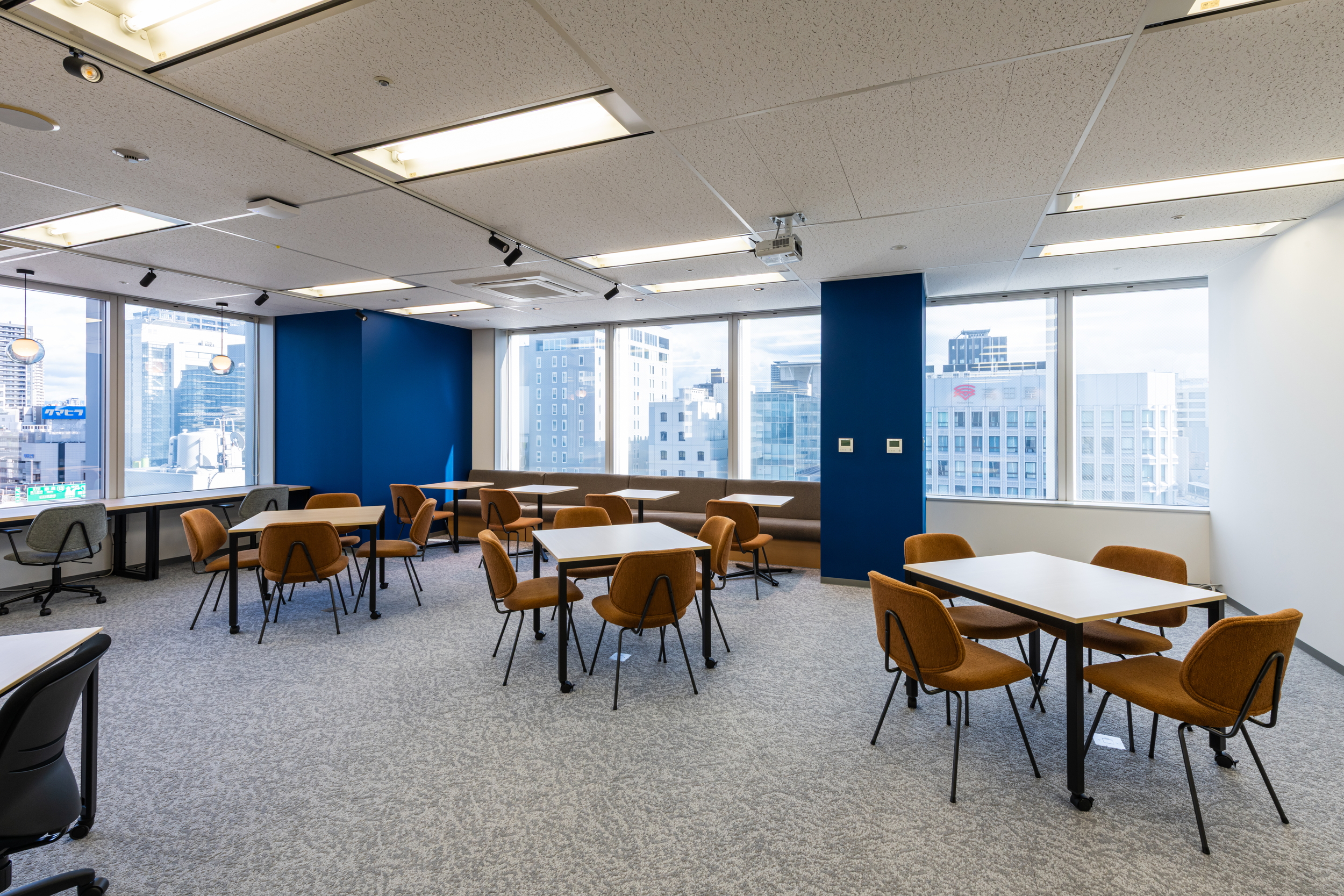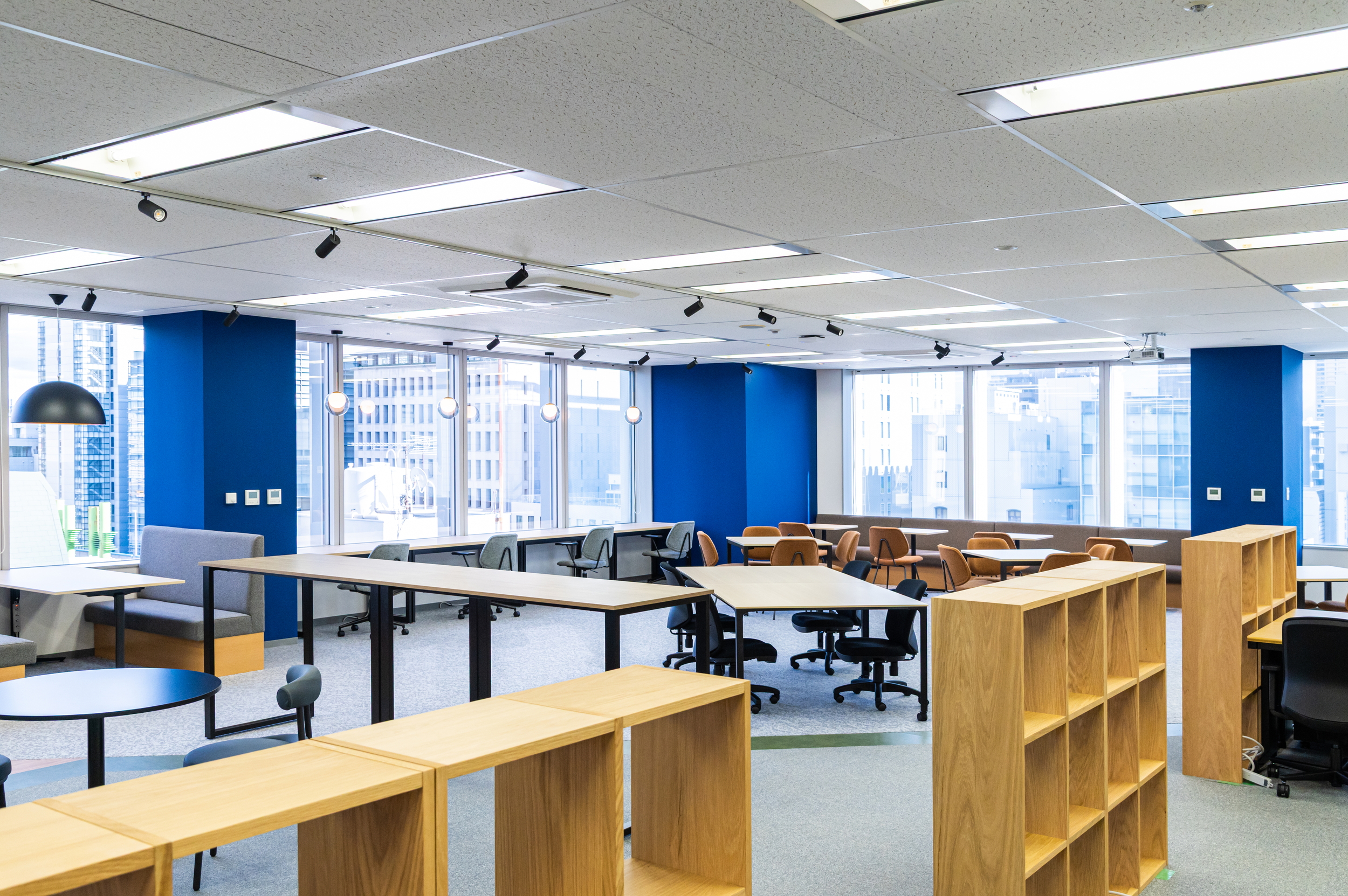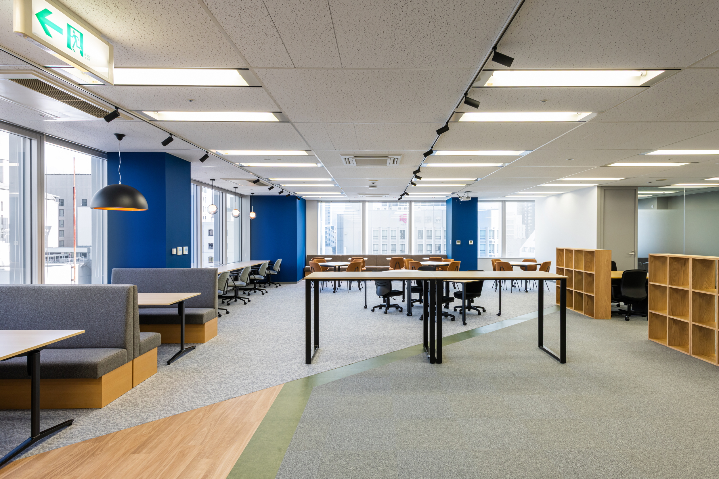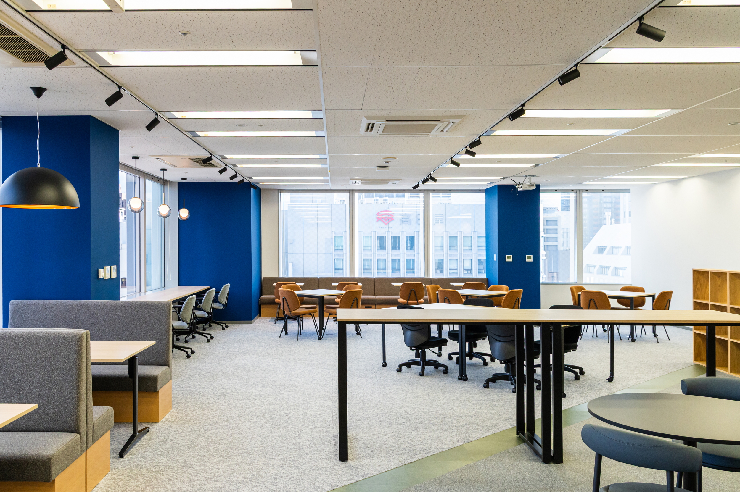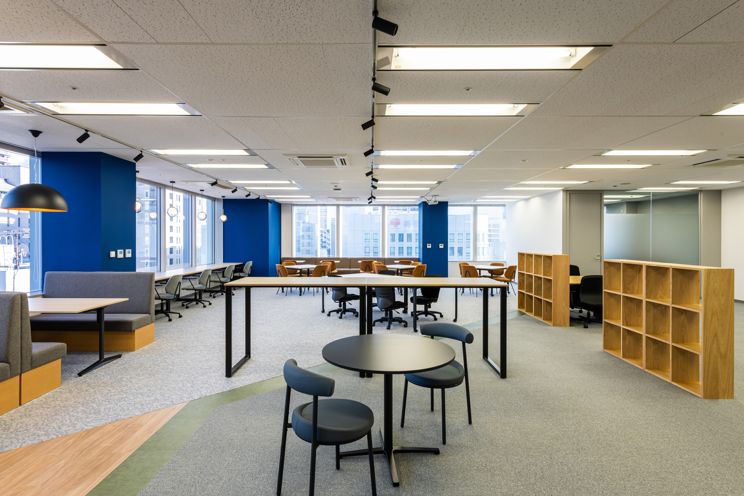 集中スペースやフリースペースなど、目的にあわせて場所を選べるレイアウトとしています。