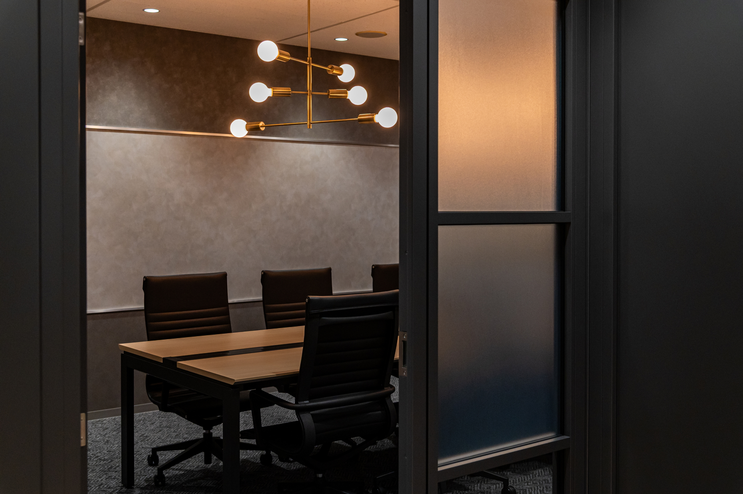 各会議室はデザインを統一させ、アイコンとなるような照明を選定。