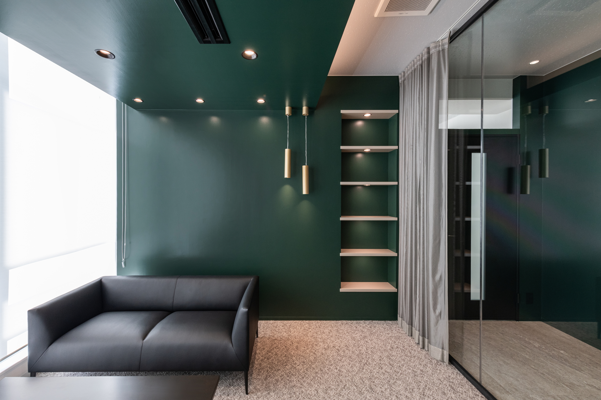 エントランスはブランドの象徴として、イタリアングリーンを基調とした空間に。