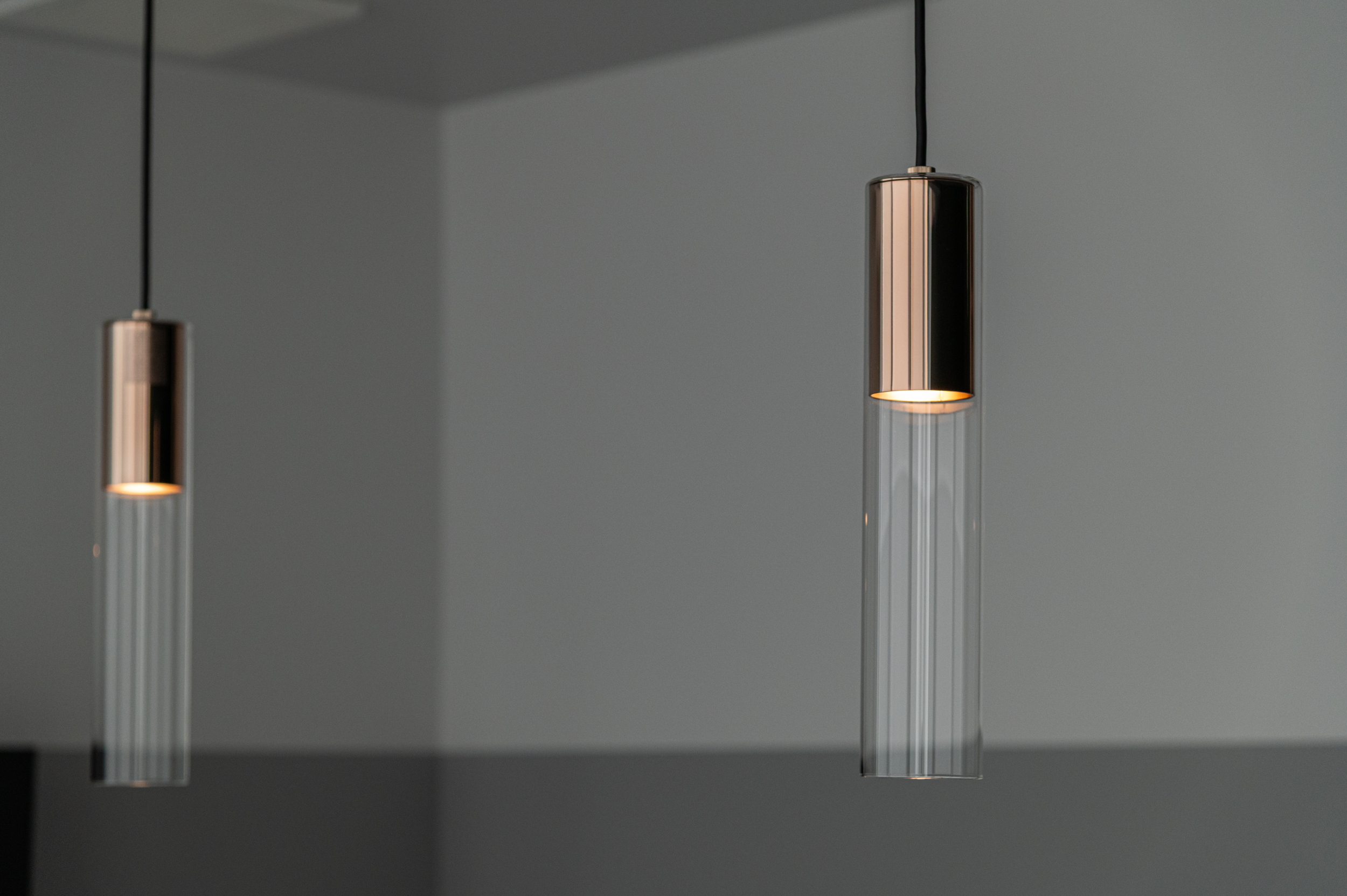 マテリアルの質感を活かしつつ、照明のトーンを抑えることで重厚感を演出。