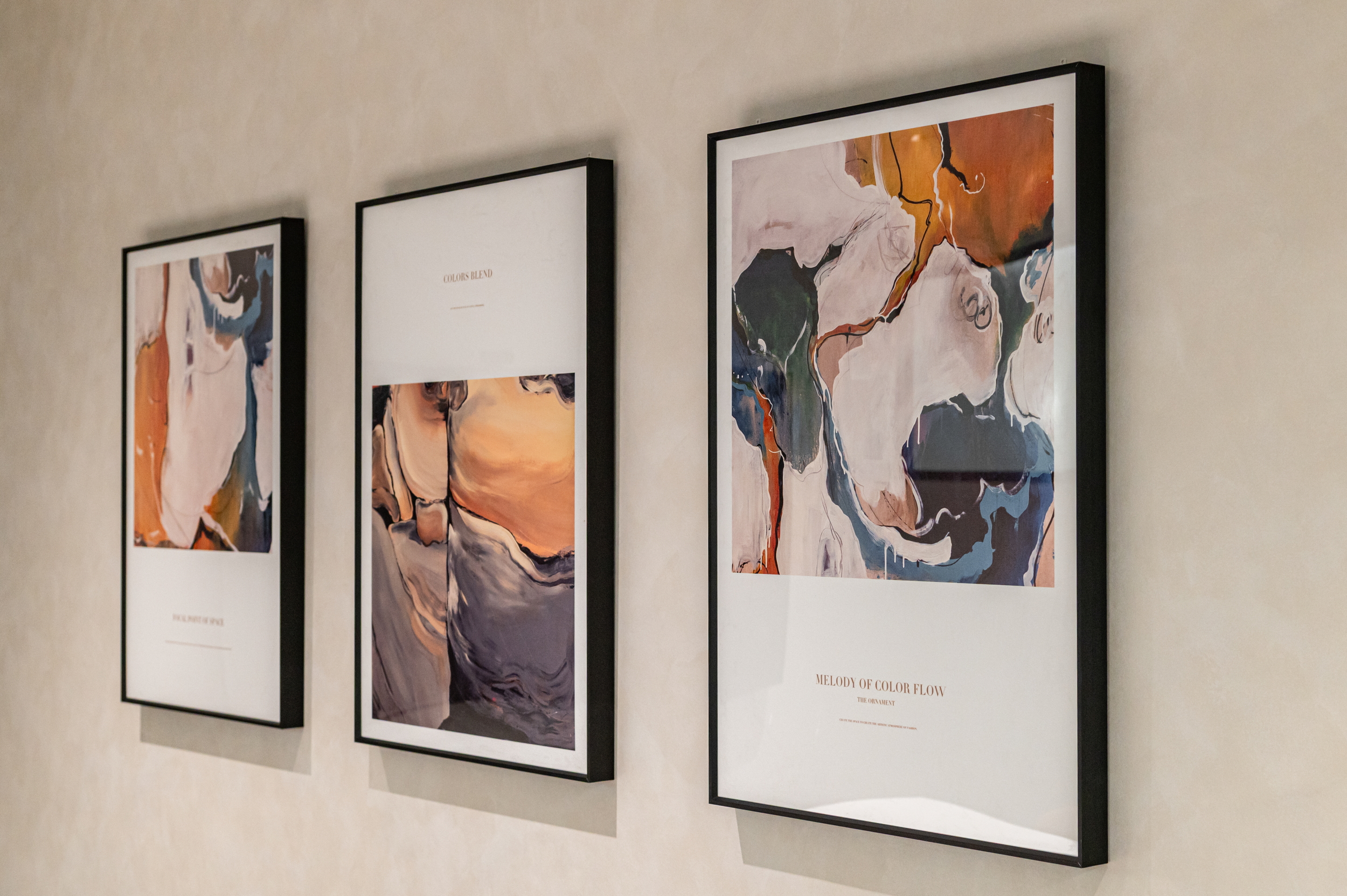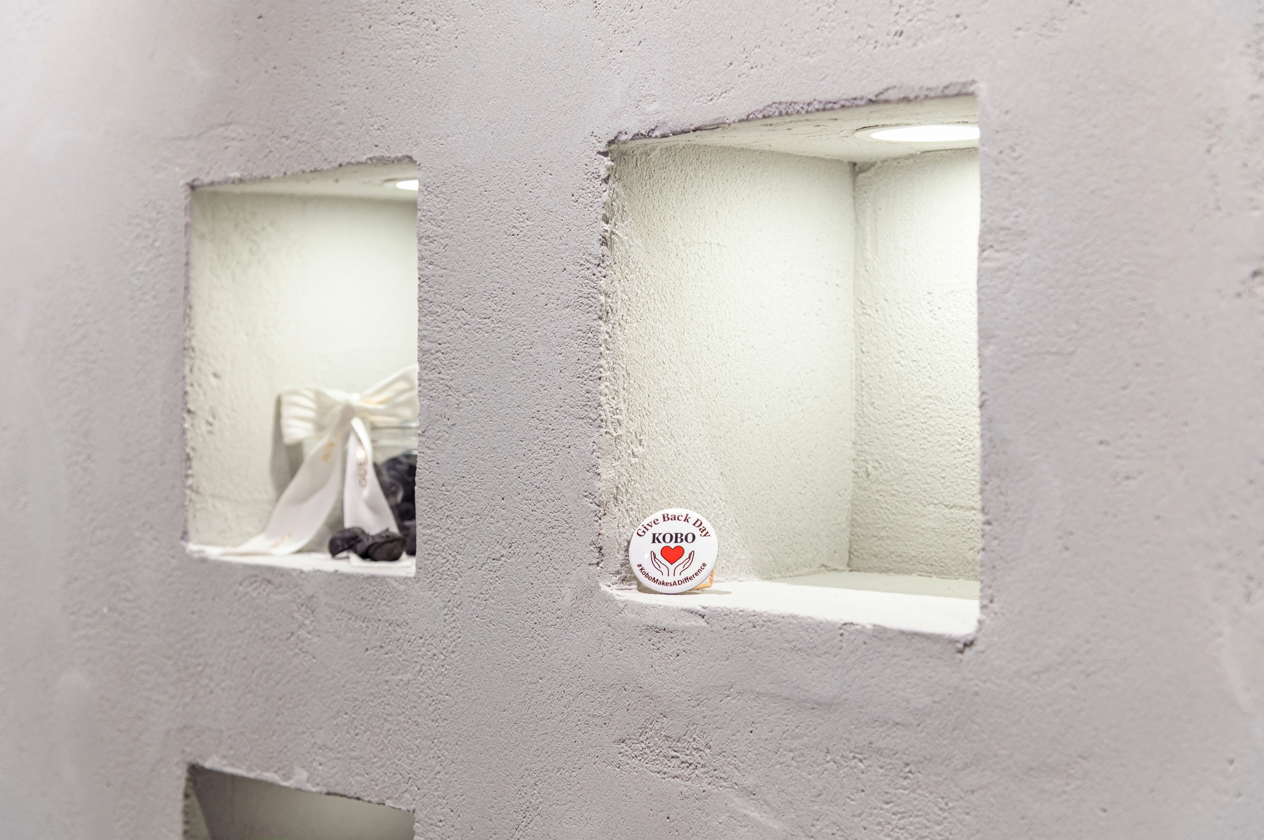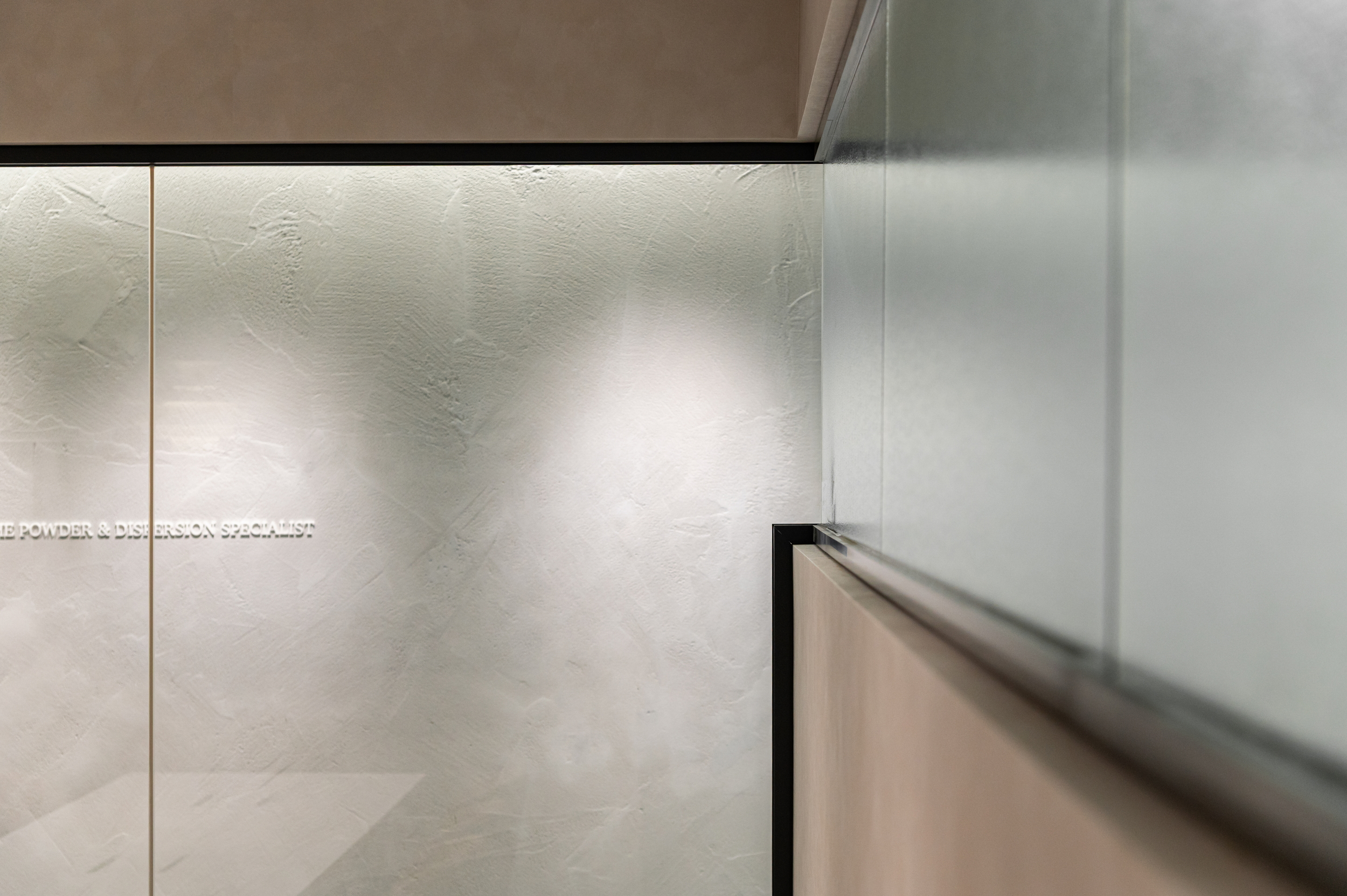 壁面は粉体技術の美しさを表現した左官塗装としました。