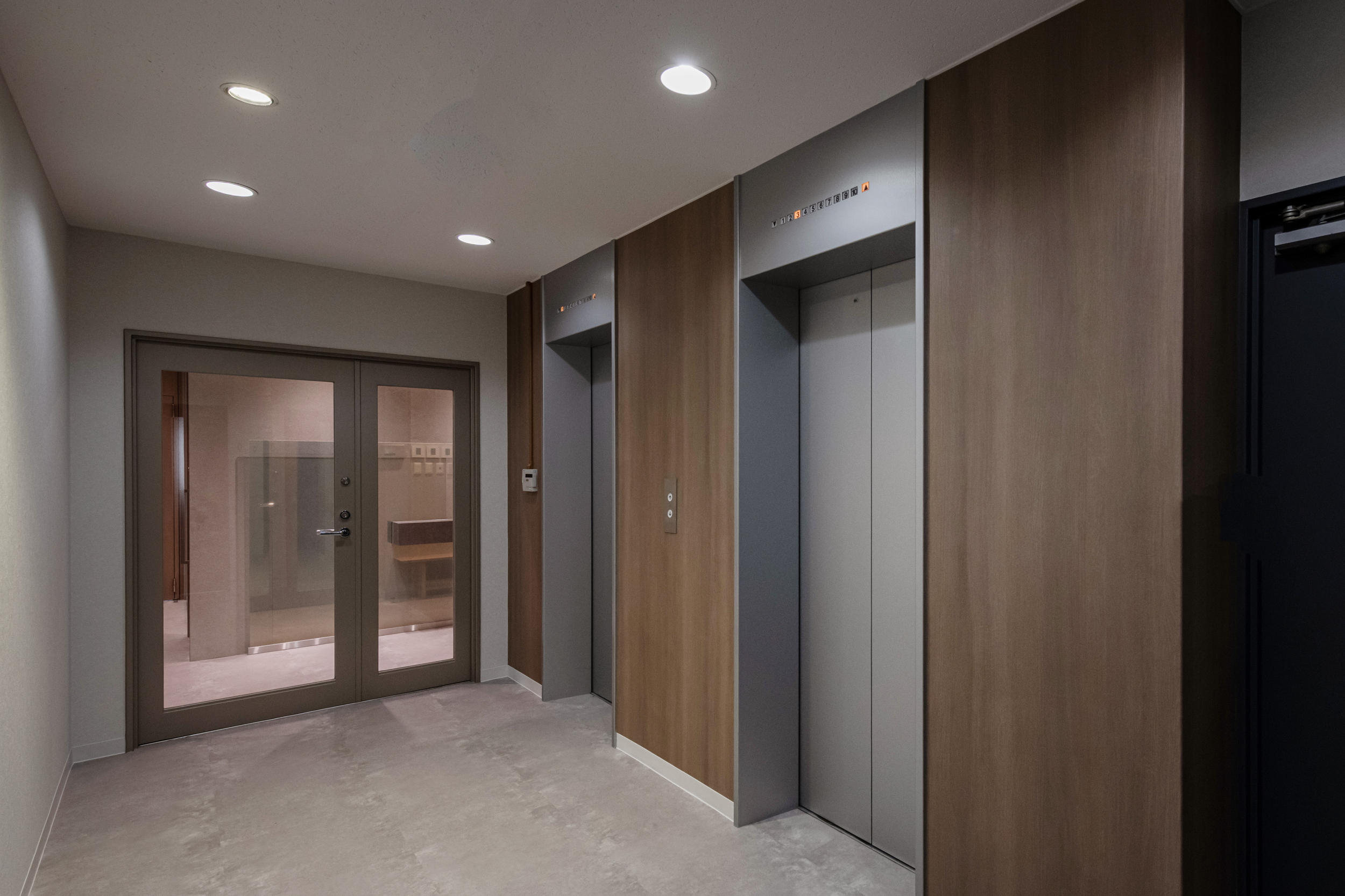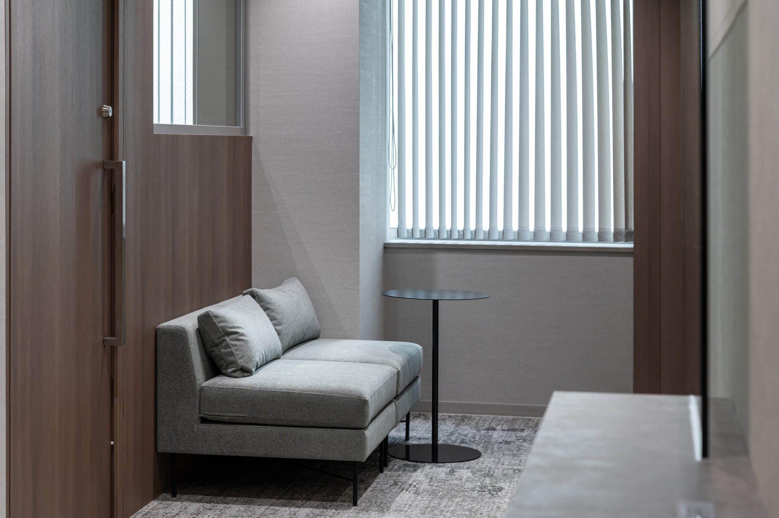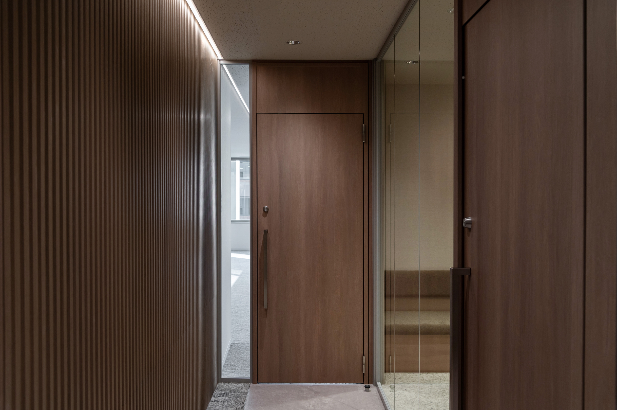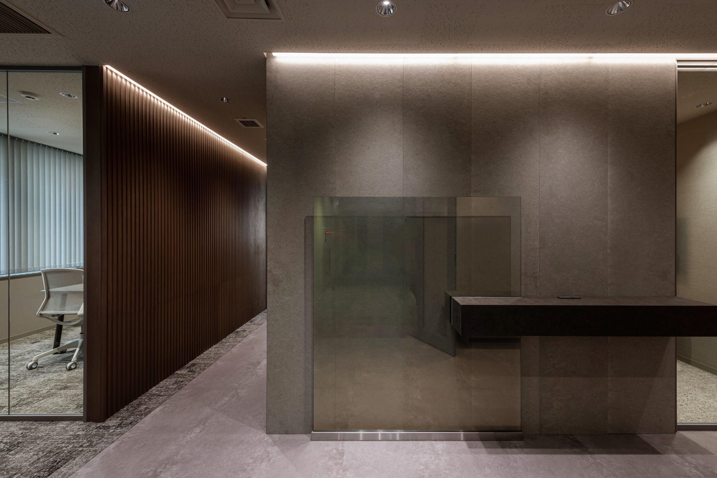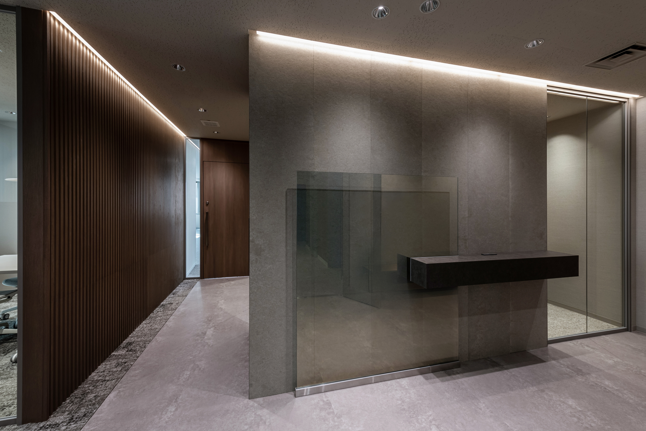 エントランスは企業の顔として丁寧に作り込み、訪れる方に信頼感を与える空間としました。