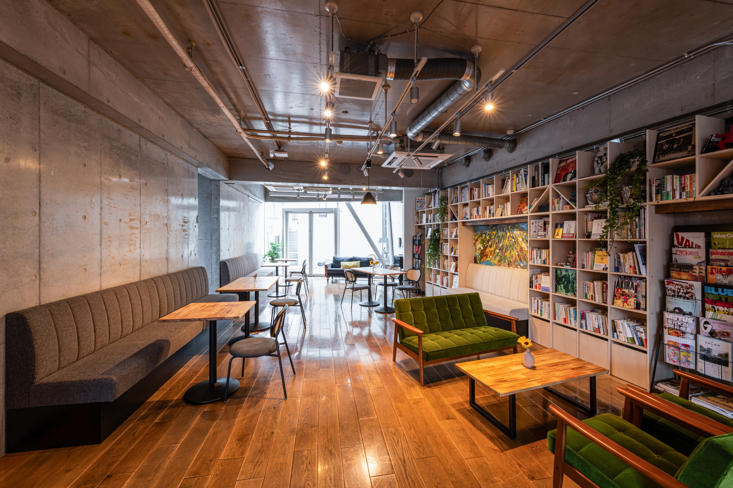 エントランスの奥は、社内外の交流を促進するオープンスペースになっています。