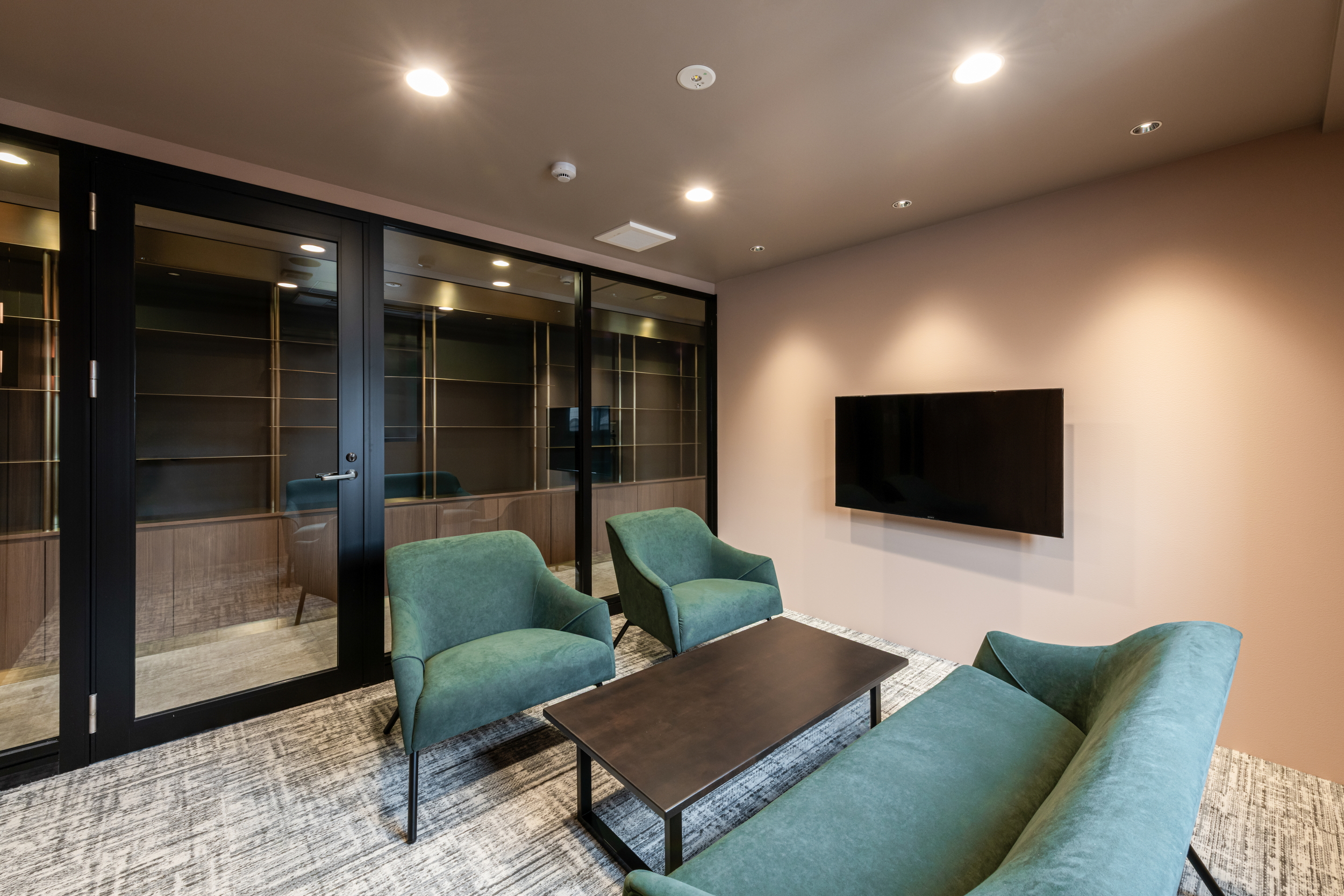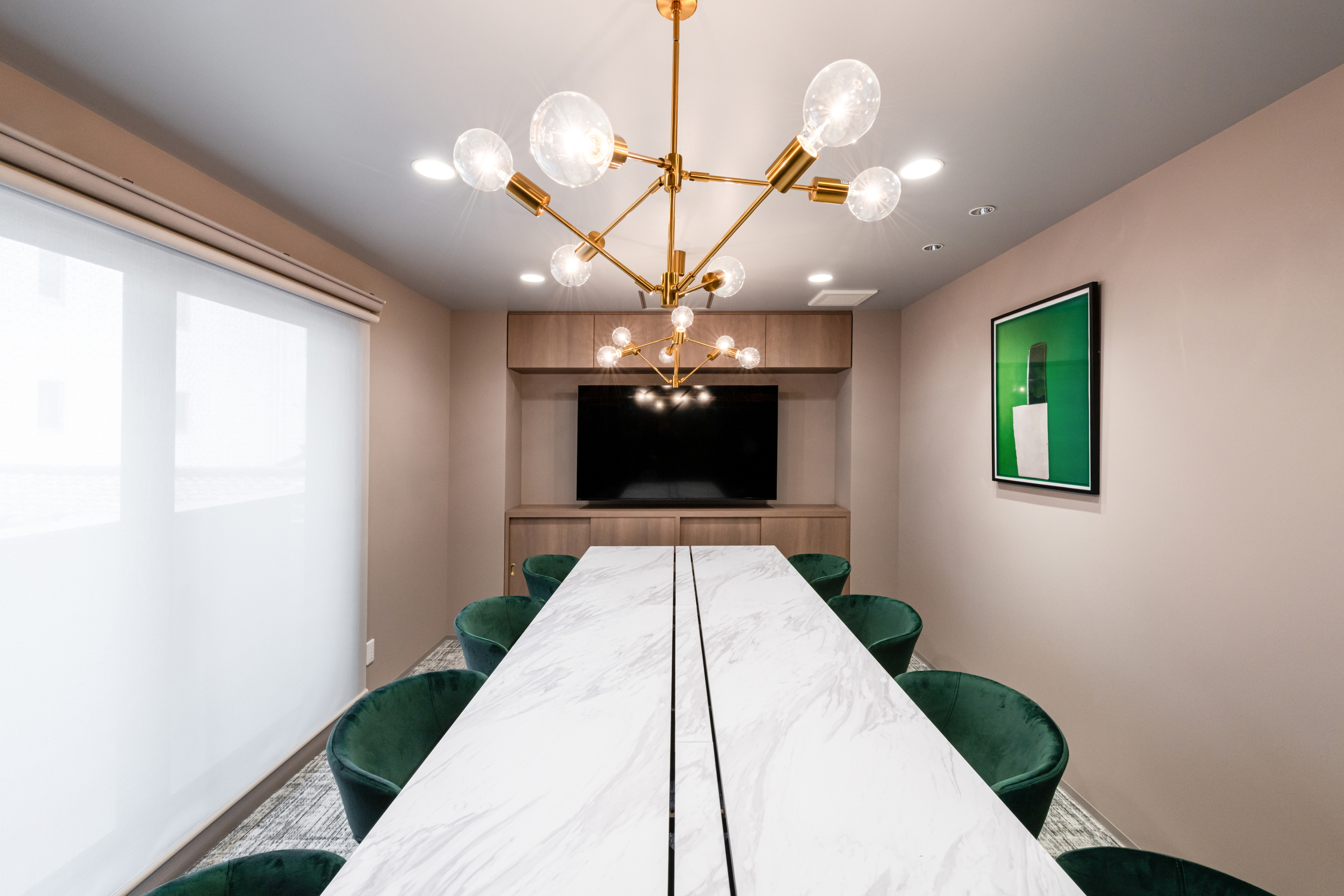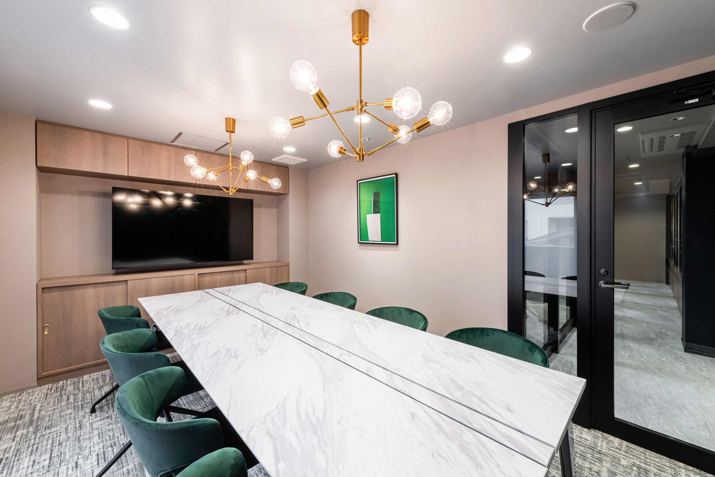 会議室は部屋ごとにデザインを変え、家具や照明、アートまでコーディネート。