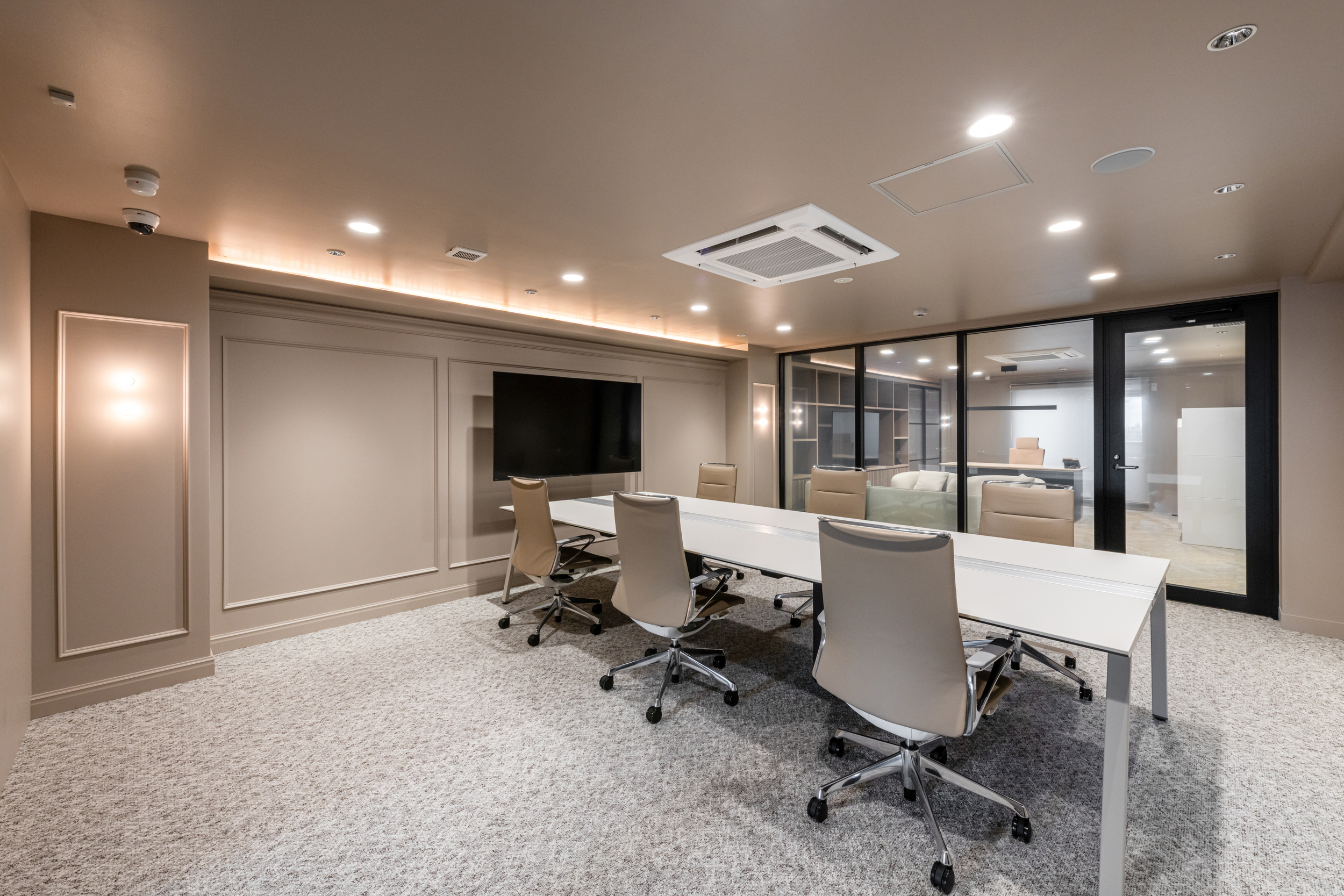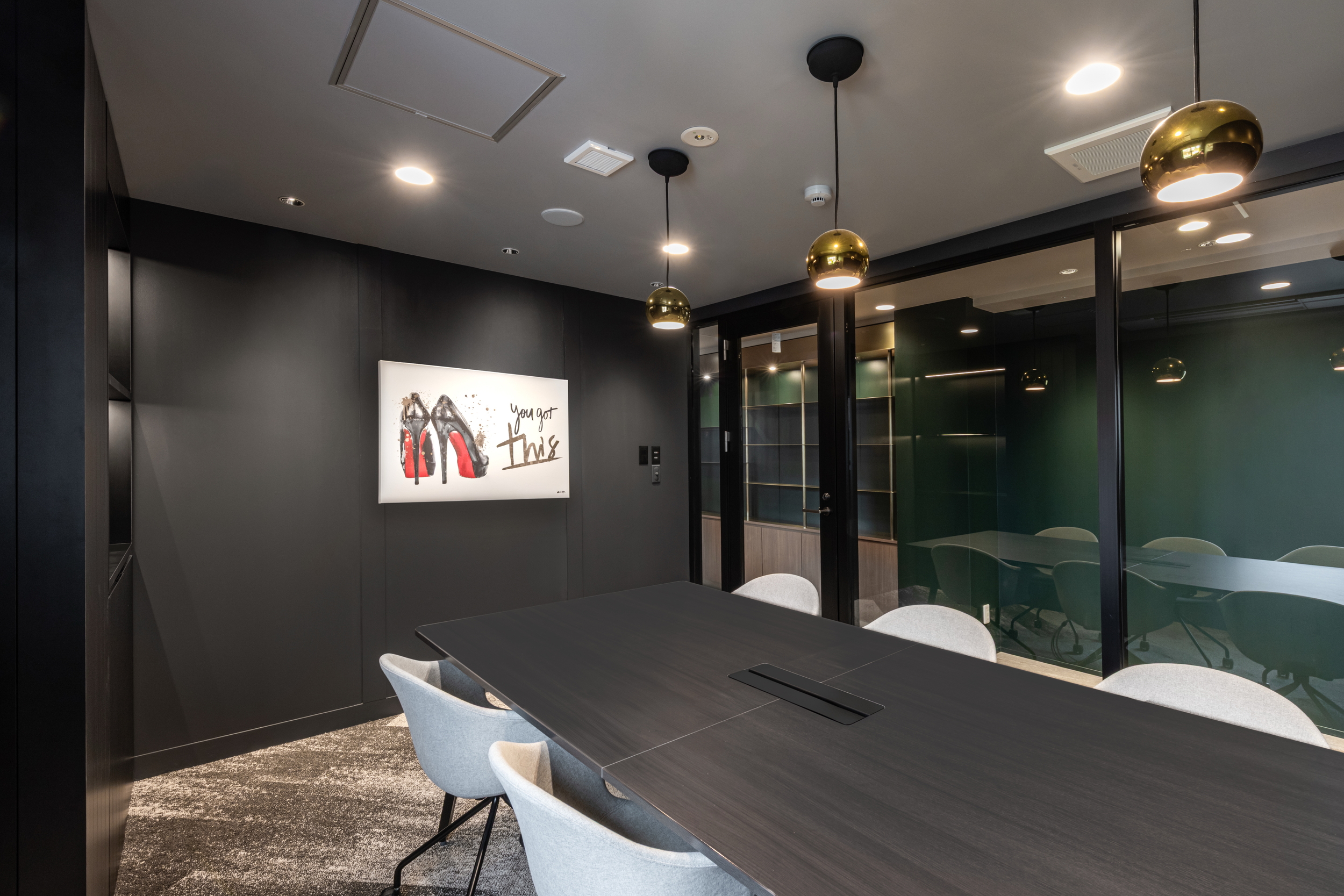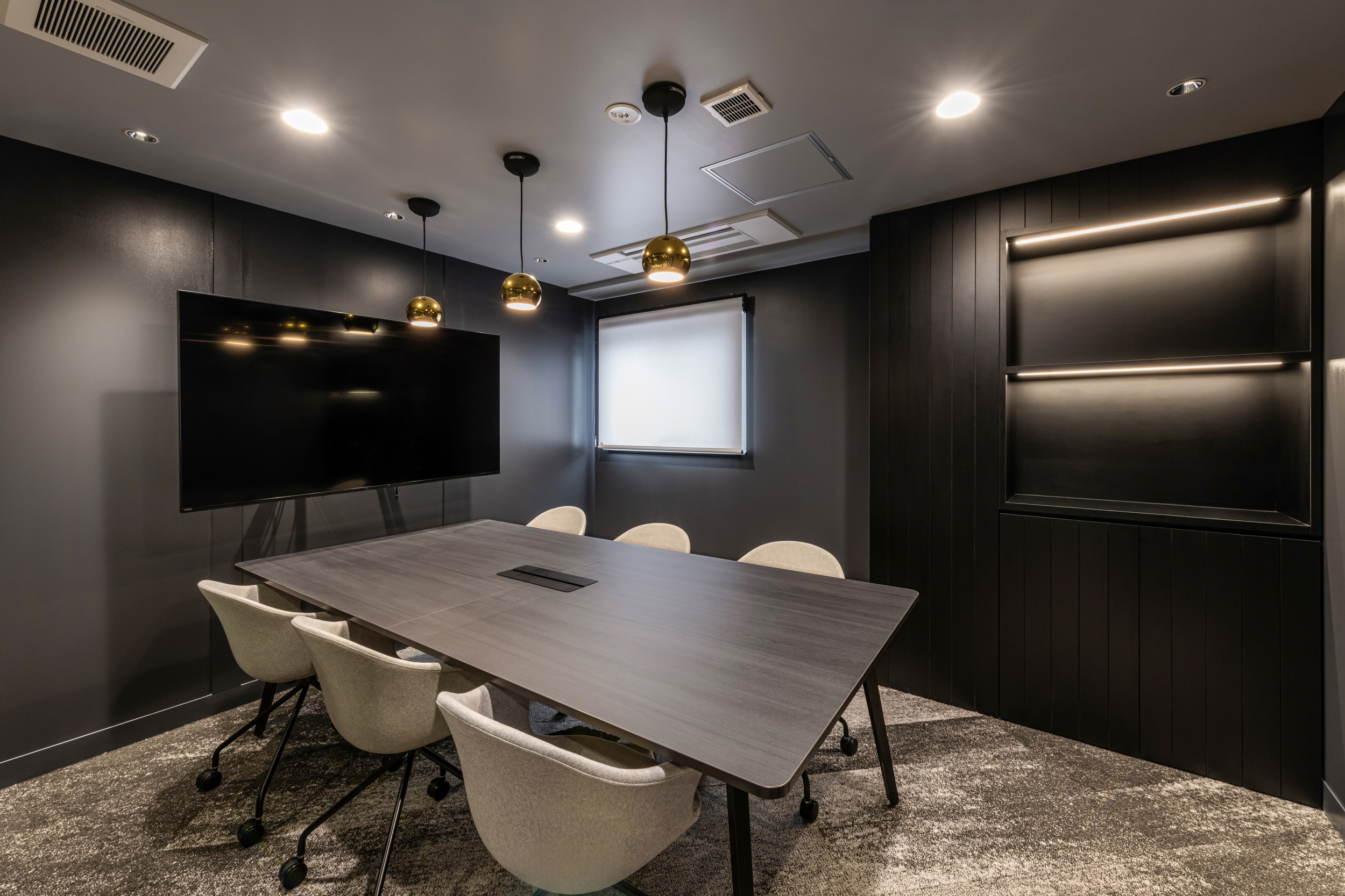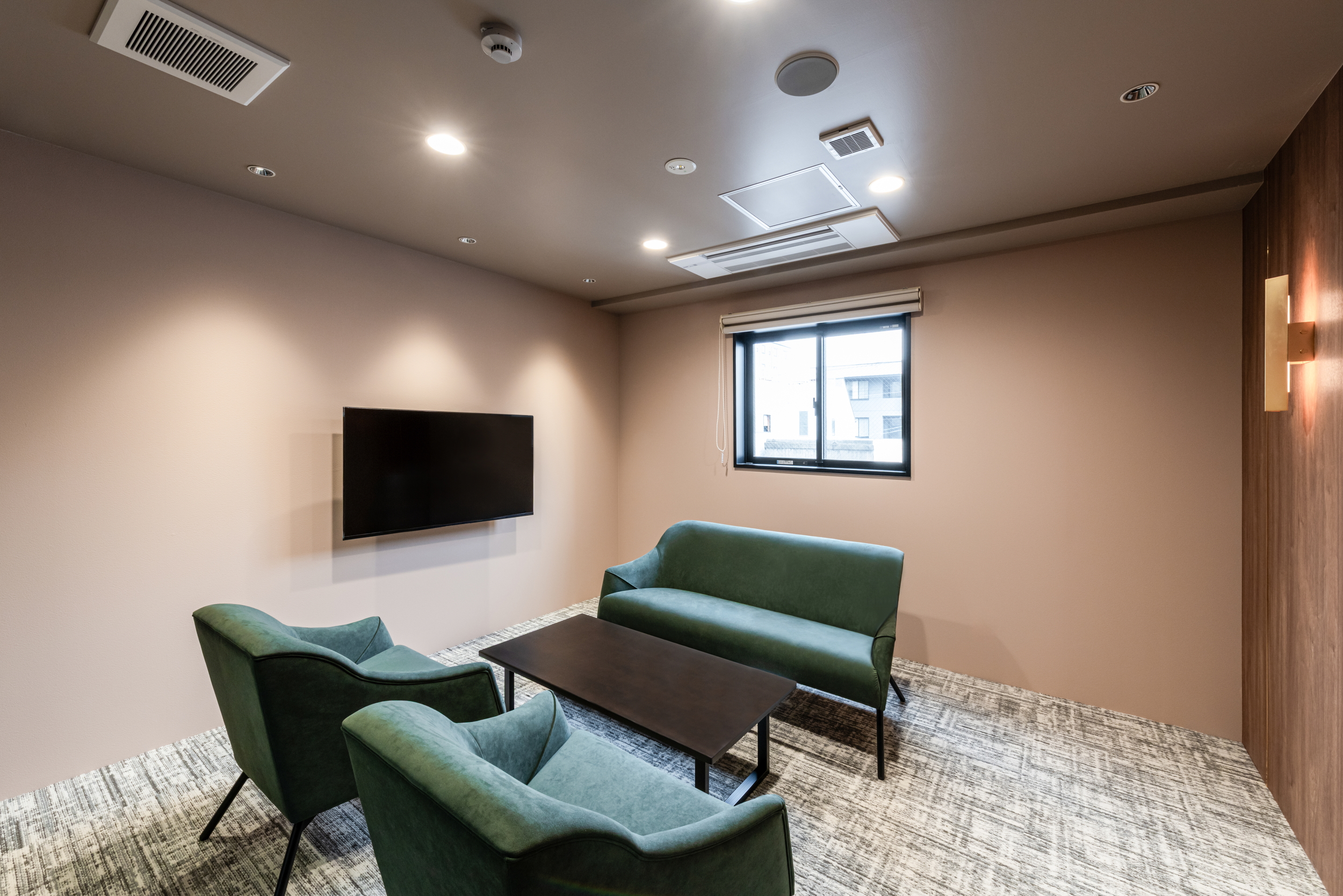 会議室は部屋ごとにデザインを変え、家具や照明、アートまでコーディネート。